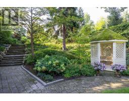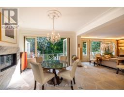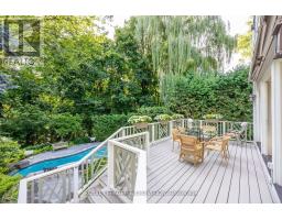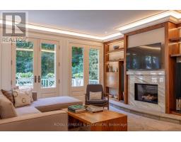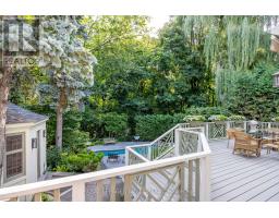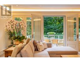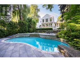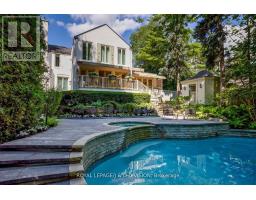 A rare opportunity to own a secluded ravine residence, gracefully set back from the street on an expansive 1/2 acre+ lot in one of Toronto's most private enclaves. Expansive, L-shaped lot, with gunite pool set to the side, and a home with 5,200+ square feet above grade that blends transitional design with timeless style. Surrounded by mature trees & a picturesque ravine, this estate offers the feeling of country living. Grand interior foyer with two-storey south windows, flagstone floors, and a sweeping staircase. The main floor is designed to entertain from formal garden views, gracious living and dining rooms, a chef's kitchen featuring an atrium skylight, Tahj Mahal Quartzite island, walnut details, and top-of-the-line appliances, connecting to a sun-filled breakfast room with fireplace and Nano doors that open to the outside. Family room with detailed millwork, walk out to a deck and panoramic views over the ravine and pool. Main floor also includes large home office off the side hallway, powder room, guest/nanny bedroom, 3-piece bath, laundry and mud room with access to the double garage. Second floor is expansive with five generous sized bedrooms, three bathrooms including a primary suite with sitting area, fireplace, spa-inspired ensuite, and tranquil views of the gardens and ravine. Lower level features upgraded mechanics, bright, playful recreation room with built-ins, cozy reading nook, fireplace, 3-piece bath, and walk-out access to the pool. The exquisite garden is designed by landscape architect Ron Holbrook, featured in Canadian House & Home and included in local garden tours. Highlights include a charming gazebo, potter's shed, large grass area for children to play, a deck ideal for al fresco dining and summer entertaining with sun awning, gunite pool with hot tub-surrounded by complete privacy, is embraced by the ravine and lush landscaping. Unmatched privacy so close to top schools, walk to Yonge Street amenities, and steps to Rosedale Golf Club. (id:47351)