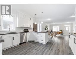 This brand new all-brick raised bungalow offers over 3,200 sq ft of finished living space, combining modern design, quality finishes, and a great layout ideal for families or multi-generational living. The main level features approximately 1,645 sq ft with 9-foot ceilings, creating a bright and open atmosphere, while the fully finished lower level adds an additional 1,565 sq ft of living space.Set on a generous lot measuring 57.45 ft by 133.13 ft, this home includes 3 spacious bedrooms on the main floor and 2 additional bedrooms downstairs, along with 2 full bathrooms on the main level and a convenient powder room. A main floor laundry room is perfect for man floor living.The classic kitchen is a standout, showcasing brand new stainless steel appliances, upgraded shaker-style cabinetry, double stacked upper cabinets with crown moulding to the ceiling, deep fridge uppers, a large pantry, and practical pot and pan drawers. Quartz countertops with undermount sinks carry through the kitchen and bathrooms for a cohesive, upscale finish. The primary ensuite offers a double vanity and a glass-enclosed shower.Outside, enjoy both a covered front concrete porch and a covered rear deck, perfect for relaxing or entertaining in any season. The exterior is complete with a fully sodded yard and paved driveway, plus a spacious 2-car garage.Additional modern features include hot water on demand, central air conditioning, rough-in central vacuum, HRV system, and a cellar for extra storage.Located on the east end of Wasaga Beach near Marlwood Golf Course, this home offers easy access to Beach 1, shopping, and everyday amenities. (id:47351)