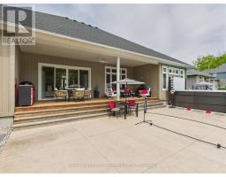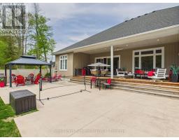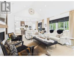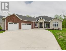 Experience luxury, comfort, and modern design in this executive bungalow just a short walk from the shores of Lake Huron in Point Clark. Exceptional curb appeal highlights the stone and brick façade, welcoming covered porch with extra-height front door, and triple-car garage complete with EV charger.Inside, the grand foyer opens to soaring 10' ceilings, an open-concept layout filled with natural light, and stylish LVP flooring. The dining room features a tray ceiling and dual-sided fireplace shared with the great room, which offers a cathedral ceiling, ceiling speakers, patio doors, and included 80" LG TV. The chef-inspired kitchen boasts extended-height cabinetry, quartz countertops, a large island, Café appliances, and a walk-in pantry.The primary suite is a private retreat with a spa-like ensuite and spacious walk-in closet. Two additional bedrooms each feature walk-in closets and private ensuites. Step outside to a fenced backyard oasis with covered porch, ceiling speakers, lounge areas, and a swim spa. Smart home features complete this exceptional property near the lake. (id:47351)