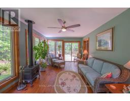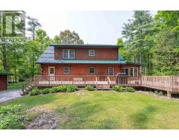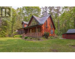 Well maintained home nestled on 1.5 acre treed lot a short walk to a public access on Pigeon Lake for great swimming. You won't be disappointed by this classic rustic log home featuring 3 bedrooms, 2.5 baths, stunning vaulted ceilings, open concept with a cozy wood stove which is WETT certified. The 4-season sunroom with propane stove overlooks a private treed yard. The updated kitchen with alderwood cabinets and soapstone counters blends perfectly with the open concept living area. The main level bedroom is located across from a newly renovated bathroom. The second floor has a large primary suite with a 5 pc ensuite bathroom plus an office area open to the floor below. The lower level is fully finished with a large family room and plenty of storage. Screened in porch, large deck, perennial gardens and an oversized double car garage with carport. Situated on a township road, and a school bus route, close to the town of Buckhorn. (id:47351)