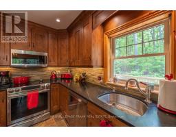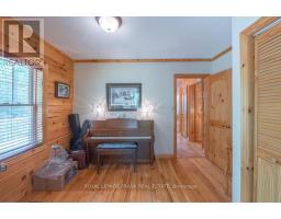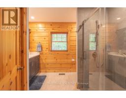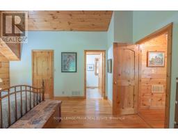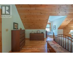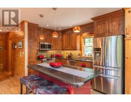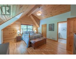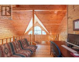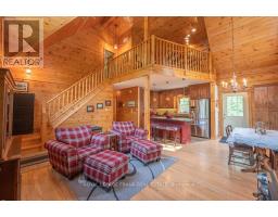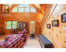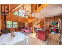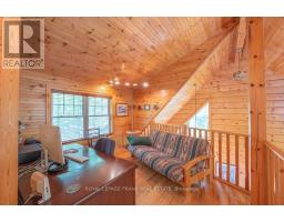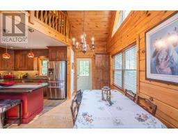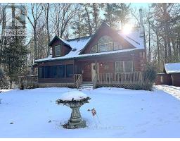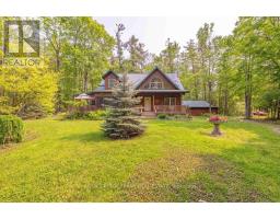 Well maintained home nestled on 1.5 acre treed lot a short walk to a public access on Pigeon Lake for great swimming. You won't be disappointed by this classic rustic log home featuring 3 bedrooms, 2.5 baths, stunning vaulted ceilings, open concept with a cozy wood stove which is WETT certified. The 4-season sunroom with propane stove overlooks a private treed yard. The updated kitchen with alderwood cabinets and soapstone counters blends perfectly with the open concept living area. The main level bedroom is located across from a newly renovated bathroom. The second floor has a large primary suite with a 5 pc ensuite bathroom plus an office area open to the floor below. The lower level is fully finished with a large family room and plenty of storage. Screened in porch, large deck, perennial gardens and an oversized double car garage with carport. Situated on a township road, and a school bus route, close to the town of Buckhorn. (id:47351)