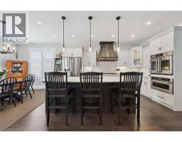 This CAPTIVATING custom- built bungalow has been lovingly maintained and cared for by the original owners. You'll love the stunning kitchen with white cupboards, elegant creamy white quartz counter tops, custom range hood crafted by Thak Ironworks, lots of storage and workspace, a spacious walk-in pantry, and a huge center island in contrasting wood. Gracious entertaining can be yours in the elegant dining room with large windows to offer a romantic setting for special moments. Here you will also find the entrance to the back porch overlooking the tranquil yard. The welcoming great room boasts engineered hardwood floors and large windows flanking the cozy gas stone fireplace. Relax and unwind in the tranquil primary bedroom retreat with large walk-in closet and inviting primary spa bath with deep soaker tub and separate shower. You'll appreciate the convenience of the main floor laundry that you can access off the garage and the kitchen, a second main floor bedroom with spacious closet and an additional full bath. Be comfy-cozy by the rustic stone fireplace in the spacious rec room designed for informal gatherings and room for a pool table. The basement also features 2 roomy bedrooms, a full bath, loads of storage and staircase to insulated double garage! Enjoy cool summer evenings on the lovely back porch or under the pergola with a picturesque view of the lawn and gardens. Apollo Shade Screens on back patio and pergola. Ambient garden lights throughout. Custom 12' x 16' shed. Quality craftmanship by Stroh Homes! Desirably located close to the school, scenic walking trails, gently rolling hills and valleys and the meandering Nith River. HOUSE AND GARDEN! (id:47351)