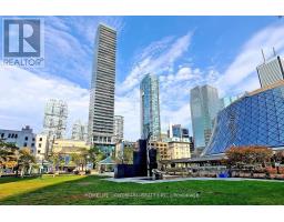 Experience urban luxury in this fantastic, bright south-facing suite. Enjoy unobstructed views of the downtown skyline and Roy Thomson Hall through floor-to-ceiling windows. This open-concept layout boasts 9ft exposed concrete ceilings, hardwood floors, and a European kitchen with integrated appliances and a gas cooktop. Step out onto the oversized balcony, complete with a gas BBQ hookup. Building amenities include a 24-hour concierge, gym, lounge, and a rooftop pool with panoramic views. Perfectly located steps from St. Andrew subway station, the underground Path, the Financial District, hospitals, world-class dining, Shopping & Much More! (id:47351)