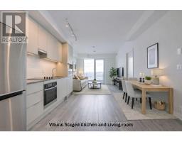 Be the first to call this brand-new suite home at North Oak, built by award-winning builder Minto. Located at Dundas St E / Trafalgar Rd in growing Oakville's Uptown Core, this beautifully designed 1 Bed + Den, 1 Bath condo in the newly completed community offers 633 sq.ft. of stylish, functional living. Enjoy a bright high-level, east-facing layout with abundant natural light, 9 ft ceilings, and floor-to-ceiling windows. Laminate and ceramic flooring throughout complements the modern open-concept kitchen featuring quartz countertops, a stylish backsplash, and stainless steel appliances. The inviting living area flows to your private 40 sq.ft. balcony-perfect for morning coffee or evening sunsets. The spacious primary bedroom includes a double-door closet, and the spa-inspired 4-piece bath adds a touch of luxury. Additional conveniences include in-suite laundry, refined finishes throughout, and internet included. Comes with one parking spot.This suite also features smart home technology including a keyless entry system, smart thermostat, and built-in alarm for added comfort and peace of mind. Available for immediate move-in. Unbeatable location close to the GO Station, public transit, the new Oakville Hospital, and Sheridan College, with easy access to Hwy 407, 403, 401, and QEW. Steps to parks and schools, plus everyday essentials and entertainment: Walmart, Canadian Tire, Longo's, Loblaws Superstore, banks, plazas, shops, restaurants, and Starbucks.Residents enjoy premium building amenities including 24-hour concierge, co-working and social lounges, a state-of-the-art fitness centre, yoga studio, games room, bike washing station, and an expansive rooftop terrace with BBQ areas. (id:47351)