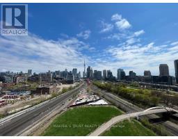 Welcome to this gorgeous 2-bedroom + den, 2-bathroom unit featuring two large balconies. Enjoy incredible, unobstructed lake views and a full view of the CN Tower. The floor-to-ceiling windows come with custom roller shades, and the open-concept layout boasts hardwood flooring throughout. The living and dining area flows seamlessly onto a spacious balcony, with walkouts from both the living room and the primary bedroom, creating a wonderful indoor-outdoor experience. The den functions perfectly as a home office or can serve as a third bedroom. Stainless steel appliances are included. Located just steps from the waterfront path, parks, shops, banks, CNE, Liberty Village, and King West, with easy access to highways and TTC. One parking space is included. Amenities feature a rooftop pool, BBQ and lounge, gym, party room, and 24/7 concierge. This is an incredible place to live-come and see it for yourself! (id:47351)