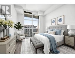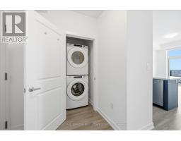 $352.44 MonthlyExperience elevated living in this stunning penthouse retreat perched on the top floor, offering 638 square feet of thoughtfully designed space. This 1 bedroom plus den residence impresses with soaring 10-ft ceilings and an abundance of natural light streaming through floor-to-ceiling windows. Step out to your private balcony and take in sweeping southwest panoramic views over the east end of Waterdown-the perfect backdrop for morning coffee or evening sunsets. The suite is loaded with quality upgrades, including custom navy cabinetry, gleaming white quartz countertops with an extended breakfast bar, upscale stainless steel appliances, a timeless subway tile backsplash, and top-of-the-line vinyl flooring that blends durability with contemporary style. Residents enjoy exceptional building amenities, including a rooftop terrace with BBQ, stylish party room, fully equipped gym, and convenient bicycle storage locker. Geothermal heating/cooling ensures energy efficiency and low utility costs year-round. Complete with 1 underground parking space and 1 storage locker, this residence offers comfort, convenience, and sophistication. This is more than a home-it's a lifestyle at the top, where modern design, smart efficiency, and breathtaking views come together seamlessly. (id:47351)