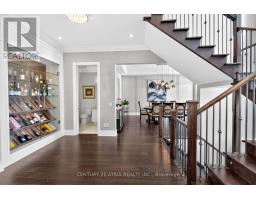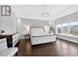 Nestled on a premium 88' wide ravine lot, this spectacular 3-car garage custom executive home offers over 4000 sqft of luxurious living with a professionally finished walkout basement overlooking a serene ravine. This beautifully crafted two-storey detached home delivers elegance and functionality in one of King City's most desirable communities. Step inside to a grand foyer with large porcelain tile flooring, soaring 10-foot ceilings on the main level, creating a bright and airy setting. Rich handscraped hardwood floors run throughout all principal living areas, hallways, and bedrooms, complemented by extensive molding, wainscoting, and refined millwork throughout the home. Designed for both entertaining and everyday living.The home features elegant formal living and dining areas along with a dramatic family room with waffle ceiling, double-sided fireplaces. The chef's kitchen showcases a large centre island, premium cabinetry, and panoramic ravine views, complete with Sub-Zero Wolf appliances, the spacious breakfast area overlooks the lush natural setting. Upstairs, enjoy 9 foot ceilings andfour spacious bedrooms, each with their own private ensuite bathroom wit heated floors and walkin closet. The luxurious primary retreat features a double-sided gas fireplace shared with thespa-like ensuite. A second-floor laundry room adds everyday practicality, with an additional laundry area located in the basement. The finished walkout basement extends the living spacewith large recreation area with a wet bar, multiple rooms and direct access to the gorgeous landscaped backyard oasis featuring a large elevated deck, and a heated swim spa tucked beneath the deck for year round relaxation. The large driveway with no sidewalk allows parking for upto six vehicles in addition to the 3-car garage. Located minutes from King City GO Station ,Highway 400, boutique shops, fine dining, supermarkets, new Zancor Centre, scenic trails offering a balance of nature and lifestyle. (id:47351)