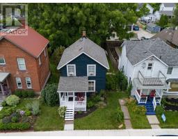 Oh the preferred South Ward in vibrant Gananoque! Step out your front door and you are minutes away from the waterfront, restaurants and pubs, the Thousand Islands Playhouse and delightful local shops! Ride your bike on the Thousand Island parkway. Enjoy your coffee on your front porch with river views! This charming one and a half storey home with original flooring and warm woodwork, has a freshly upgraded kitchen with quartz countertops and modern cabinetry. Living room with wall mount air conditioner / heat pump and gas freestanding woodstove for cozy winter nights. There is a wee sun room/ mud room with newly installed main floor laundry which leads out to a private treed backyard with garden shed. The handy South Alley lane provides access for 3 parking spots at the rear of the property. Upstairs there are two bedrooms and a 4 piece bath with a vintage claw foot bathtub. An easier lifestyle awaits you in Gananoque today! (id:47351)