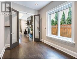 Modern masterpiece in prestigious Humber Valley!! Welcome to 122 Wimbleton Road, an architecturally stunning custom residence nestled in the heart of Toronto's exclusive Humber Valley. Designed by renowned architect David Small, this bespoke 4+1 bedroom, 5-bathroom home offers over 6,000 square feet of exceptional living space, masterfully blending modern West Coast elegance with seamless indoor-outdoor living. Located within a top-tier school catchment, this home is just a short walk to some of Toronto's most sought-after public, private and Montessori schools, making it ideal for families seeking elite education in a prime location. Custom Sapele Mahogany front door leading to dramatic foyer with soaring 20ft. ceiling and radiant natural light. 10ft ceilings on the main level and 9ft on the upper and lower levels. Quarter-sawn white oak flooring on the main and upper levels with hand-scraped hardwood in the lower level. Gourmet kitchen by Marcon featuring Wolf, Sub-Zero and Miele appliances. Walls of glass open to a Serene backyard oasis with a 16x32x8ft saltwater pool w/waterfall, outdoor gas fireplace and TV. Spa-inspired primary ensuite with 1" water line, Aqua brass fixtures and heated floors. Radiant heated lower level with glass-enclosed gym and custom wine cellar by Rosehill. ELAN smart home automation: whole-house A/V, lighting, security and intercom. Designer lighting and Hunter Douglas blinds throughout. Crafted with integrity and artistry - reclaimed brick from a historic church, Golden Brand wood windows and meticulous wood sheathing - this residence is both a work of architecture and a home of enduring warmth (id:47351)