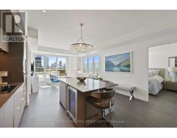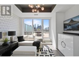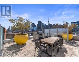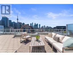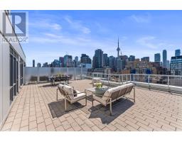 Perched atop the award-winning SQ Building by Tridel, this designer-upgraded suite offers over1,000 SQFT of refined interior space and a RARE 969 SQFT south-facing private terrace withunobstructed views of the CN Tower and Toronto skyline. A true backyard in the sky, theterrace is complete with BBQ and water lines, offering an unrivalled space for outdoor livingand entertaining. Thoughtfully designed with a split two-bedroom layout plus an enclosed denand 2.5-baths, this residence combines functionality with luxurious finishings throughout. Thespacious open-concept living and dining areas are framed by floor-to-ceiling windows, floodingthe space with natural light and offering seamless indoor-outdoor flow to the expansiveterrace an entertainers dream. The chef-inspired kitchen is anchored by an oversized islandwith an integrated wine fridge, upgraded with sleek stone counters and custom cabinetry, andoverlooks the bright, airy main living space. Both bedrooms feature walk-in closets andprivate ensuites, providing ultimate comfort and privacy. The fully enclosed den, outfittedwith a custom-milled Murphy bed and integrated desk, easily functions as a third bedroom or awork-from-home retreat.Upgraded throughout with nearly $90,000 in builder and designerenhancements, including automated blinds, custom millwork, retractable screens, premiumfinishes, and wide-plank flooring. Included are two side-by-side underground parking spaceswith EV charging capability, plus a full-size locker. Located just moments fromTrinityBellwoods Park, Ossington, and the best of Queen West, this rare offering pairs modernconvenience with elevated city living. (id:47351)