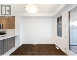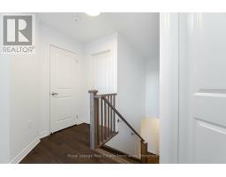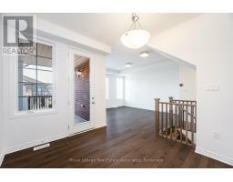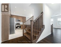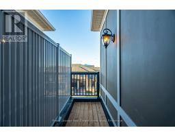 Discover a well-designed executive townhome offering comfort and style in Upper Joshua Creek. This immaculate home features a spacious entry with a mirrored closet, custom built-in shelving, and direct access to the garage. Hardwood stairs lead you to the open-concept main floor, where you'll find beautiful hardwood flooring throughout. The gourmet kitchen boasts stainless steel appliances, quartz countertops, ample cabinet space, and a breakfast bar, all overlooking the bright dining area with a walkout to the private balcony. Conveniently located on the main level, the laundry room adds to the home's functional design. The third floor offers a spacious main bathroom, a large linen closet, and three bedrooms, including a luxurious primary suite with a 3-piece ensuite featuring an oversized glass shower, double closets, and a private balcony. Additional storage space is available in the basement crawl space. This home is ideally located near shops, restaurants, schools, and parks, with easy access to major highways (403/QEW/407) for a quick commute. Don't miss the opportunity to enjoy this exceptional home! (id:47351)