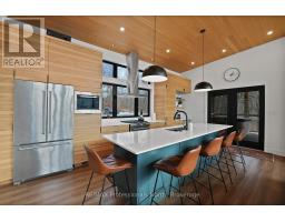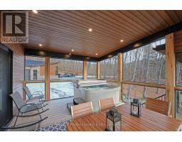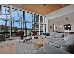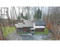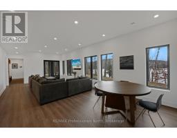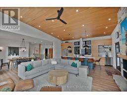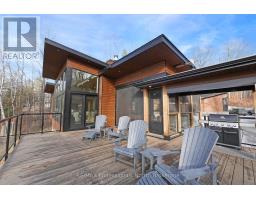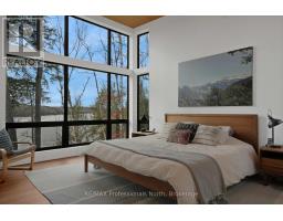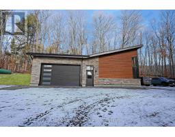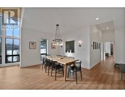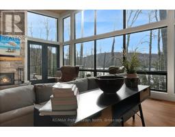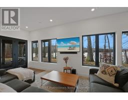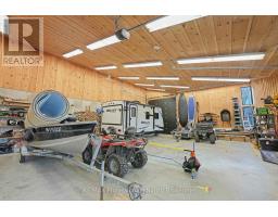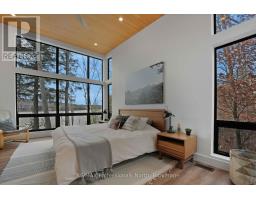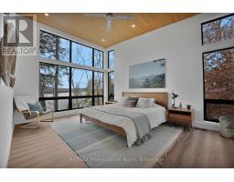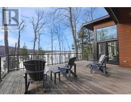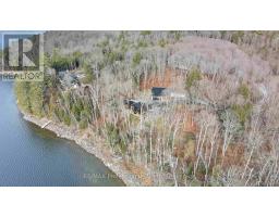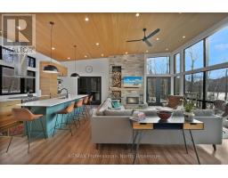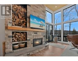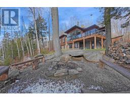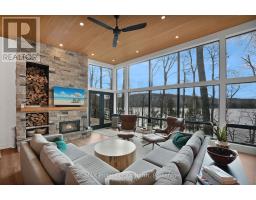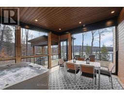 Discover luxury and meticulous craftsmanship in this spacious turn-key 5 bedroom, 3 bathroom home located on nearly 10 acres of Haliburton Lake waterfront. The heart of the main living area features a stunning wood-burning fireplace that creates an inviting focal point, perfect for cozy evenings after a day on the lake. The expansive windows flood the space with natural light and frames those spectacular western sunset views, while the open concept layout flows seamlessly for both intimate family gatherings and larger entertaining. A generous screened-in room extends your living space outdoors, offering a bug-free retreat where you can enjoy morning coffee, al fresco dining, or simply relax with a book while listening to the gentle sounds of the lake. Premium vinyl plank flooring flows throughout the bedrooms and main living areas, while all 3 bathrooms feature heated floors that add a touch of everyday luxury. The exterior of this property is equally as impressive, featuring landscaped steps that gently guide you to the waterfront where an oversized dock sits on a pristine rocky shoreline. The clear, weed-free water provides ideals swimming with big lake views. A fire pit creates the perfect gathering spot for family evenings. Engineered for superior comfort and year-round efficiency, this residence showcases comprehensive spray foam insulation, an advanced membrane wrap system around the foundation for absolute waterproofing, and thoughtfully designed roof overhangs that maximize passive solar gains-welcoming winter warmth while providing summer shade. The fully insulated 1500 sq. ft garage features over R15 under-slab insulation with R30 above grade walls and radiant electric floor heating, creating a comfortable workspace or storage area in any season. Access 1200 acres of shared land, complete with trails for endless opportunites to explore untouched nature. Experience 1237 Burlywood Trail on one of Haliburton's most sought after lakes. (id:47351)