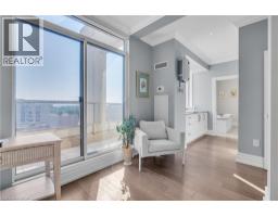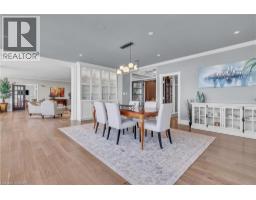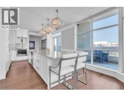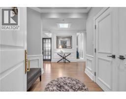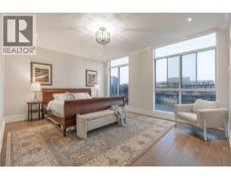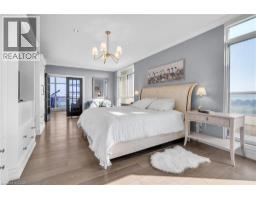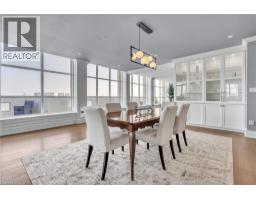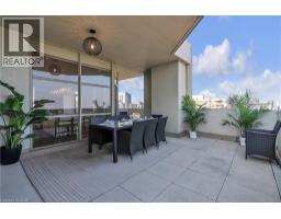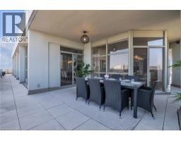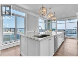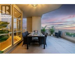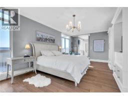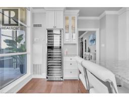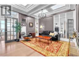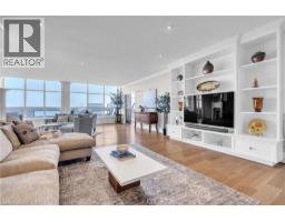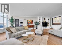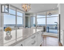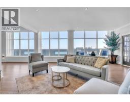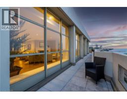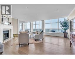 This extraordinary penthouse is the only residence on the top floor of this fabulous tower, offering unmatched privacy and exclusivity. With more than 4,000 sq ft of refined single-level living and nearly 1300 sq ft wraparound terrace, it captures breathtaking views of Lake Ontario, the Burlington skyline, and the Skyway Bridge. Through the grand unit door, the impressive entry foyer sets the tone with its skylight, custom millwork, and generous closets. Beyond, the home unfolds with soaring ceilings, engineered hardwood floors, and luminous natural light streaming through walls of spectacular windows and multiple skylights. Expansive principal rooms flow seamlessly, ideal for both grand entertaining and intimate everyday living. The open-concept living and dining areas are complemented by a fireplace and sophisticated wet bar, and offer easy access to the terrace for effortless indoor-outdoor living. The gourmet kitchen blends style and function, featuring stone counters, a dining island, stainless appliances, and windows on two sides framing captivating lake views. Two sprawling, stately bedrooms each enjoy lavish ensuites, walk-in closets, and their own private terraces. A richly appointed office with custom built-ins and a skylit den with coffered ceiling add elegance and versatility. Practicality is equally considered in this exquisite home with a powder room, ample in-suite storage, a large locker, and three premium underground parking spaces. Monthly condo fees include all utilities except hydro, offering simplicity and peace of mind. The building itself is impeccably maintained, with on-site superintendent, outdoor pool, gym, party room, workshop, underground visitor parking, and a warm wood-panelled lobby. Steps from Spencer Smith Park, the waterfront, hospital, and downtown Burlington’s shops and restaurants, this remarkable residence is among the city’s most prestigious offerings. (id:47351)