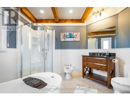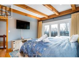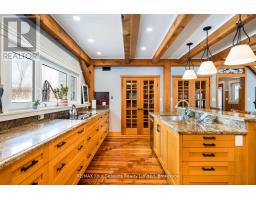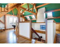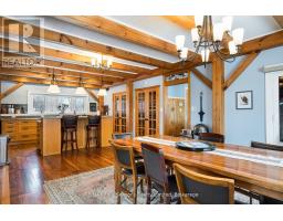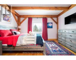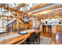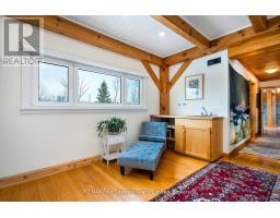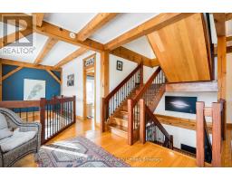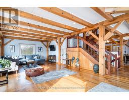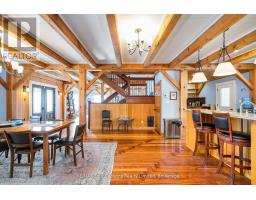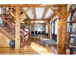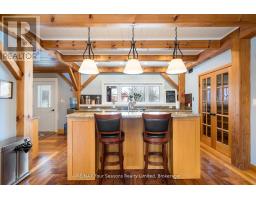 Stunning Timber Frame Estate on 2.5 Acres in Thornbury. Exceptional stone-clad timber frame residence offering approximately 6,300 sq. ft. of beautifully crafted living space, set on 2.5 private, fully landscaped acres. Designed for extended family living, entertaining, or use as a luxury short-term rental (Airbnb), this one-of-a-kind property delivers comfort, privacy, and four-season enjoyment. The maintenance-free all-stone exterior provides superior insulation and quiet durability, while the timber frame construction and South American hardwood floors add warmth and character throughout. Expansive, light-filled principal rooms create an inviting atmosphere for both everyday living and hosting larger groups. The home features 6 bedrooms and 6 bathrooms, including a primary suite and guest suite with private ensuites, offering excellent flexibility for family and guests. The chef's kitchen is complemented by a butler's pantry and separate baker's kitchen, ideal for entertaining or catering. European tilt-and-turn windows enhance energy efficiency and indoor-outdoor flow. Resort-style amenities include a 17-foot indoor swim spa and sauna, geothermal heating and cooling, and radiant in-floor heating throughout. Multiple living areas provide ample space and privacy, making the layout well suited for short-term rental use. Additional highlights include a 36' x 24' heated workshop with separate driveway, perfect for hobbies, storage, or a home business, and a 26' diameter dome greenhouse for year-round gardening. Furnishings are negotiable, offering potential for a turnkey rental opportunity. Ideally located minutes from Thornbury and Meaford, and a short drive to Blue Mountain Village and private ski clubs, this chalet-inspired estate offers an outstanding opportunity to enjoy a premium recreational lifestyle or generate income in a sought-after four-season destination. (id:47351)