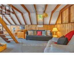 Turn key including 17.5 ft Bayliner, canoe and paddle boat included! A-Frame cottage on highly sought-after Healey Lake, a short distance from Parry Sound & 2 hours from Toronto. End your days relaxing under the starry sky and fresh air around the stone fire pit area rather than inside 4 walls. Healey Lake is renowned for its great fishing and all of your boating activities. Ownership of the Shore Road Allowance. The cottage sits perched close to waters end for simple access to the waterfront. Enjoy the 149.5' of waterfront w/a sandy beach where many children have learned to swim over the years, & an area w/deeper water to dock boats and jump in to start your day with a splash! A cozy 2 bedroom cottage & loft. Space for family and friends to visit. 2x 3pc baths, a well-equipped kitchen, a dining area w/breathtaking views of the lake. Family room w/WETT certified Vermont Casting Resolute Wood Stove, ceiling fans, & a convenient laundry area. Walk out to lower and upper deck. Backup, plug-in generator. Metal roof. Enjoy the beautiful evening sunsets from the deck or dock. This proximity allows for easy access to any amenities or services you may need during your stay. Ready to enjoy before summers arrival. Experience the tranquility & beauty of cottaging on Healey Lake! This is a boat access cottage but it can also be reached by ATV & Snowmobile. Abutting crown land to add more activities from your door step adding full days of exploring and fun. (id:47351)