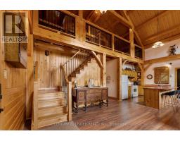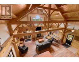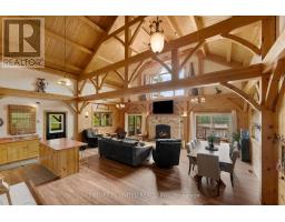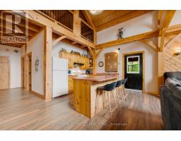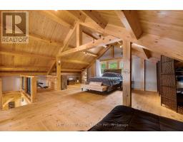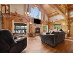 170 ACRES | 200+ Acres Crown Land | 550ft Water-frontage | Fully Winterized | Hunt Camp or Private Lakeside Retreat! This timber-frame lake house offers rare seclusion, year-round access, and a setting of unmatched privacy, scale, and natural beauty, built for both retreat and recreation bordering 100 acres of landlocked Crown land. Every beam and pine finish was milled from the property itself a legacy build shaped by its surroundings. Another 110 acres of untouched Crown shoreline stretches across the water, preserving your view lines and reinforcing the exclusivity of this setting. This side of Shawenegog Lake is home to just five homes/cabins, each generously spaced, with a residents-only beach tucked 10 minutes away. Trails, natural streams, and forested privacy surround you ideal for hiking, hunting, and all-season exploration. Inside, the home features vaulted ceilings, lakeside windows, and a stone fireplace anchoring the open-concept living space. Two bedrooms and a full bath are located on the main floor, with a generous primary suite in the loft above. Screened porches on both sides, plus a lakeside deck, offer space to unwind in every season. Thoughtful upgrades throughout, many not listed here including propane heating (2023), central air (2022), new windows and doors, Starlink internet, and a 20kW diesel generator enhance comfort while staying true to the homes craftsmanship, modern amenities and custom design. The walkout basement offers future potential for a workshop, recreation area, or expanded living space. This is more than a retreat its a rare, legacy-scale opportunity to live with privacy, purpose, and a connection to the outdoors that few properties can offer. (id:47351)