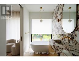 If you're not obsessed with quality, design, and craftsmanship,this is not the home for you.Before you notice the scale, you feel the intention.Set on an extraordinary 185-foot-deep irregular lot in Sherwood Park, this property offers something almost impossible to replicate in midtown: depth, privacy, open sky, and uninterrupted sightlines surrounded by mature trees.A three-year architectural pursuit built around one idea, permanence.The journey began in Tuscany, where authentic stone was hand-selected from mountain quarries. Over 30 slabs of Italian marble, Calacatta Vagli, Calacatta Viola, Arabescato, Travertine, Pietra Grey, individually chosen. Eight months were dedicated to fabrication and installation alone.The kitchen stands as a monolithic statement a 15-foot fully wrapped, bookmatched Calacatta Vagli island flowing seamlessly into marble-clad walls. A three-sided glass fireplace floats beneath vein-matched travertine framed in deep Pietra Grey.Rift-cut European white oak defines the architecture, floors, millwork, wall paneling, and the commanding 10 foot entrance door, all meticulously matched.Integrated Sub-Zero, Wolf, and Miele appliances disappear into the design. Heated floors extend from the interior living spaces to the driveway and garage. Triple-layer European windows flood more than 4,000 square feet of expanded living space with natural light.And then, the final act.A spectacular designer-landscaped backyard featuring a heated concrete pool clad in premium Trend Group tile, complete with a waterfall feature and convertible salt or chlorine system. Dual composite decks create layered entertaining spaces. A fully integrated Lynx outdoor kitchen. A 32-by-32 custom stone terrace. Intelligent landscaping. Curated lighting. Recognized for its exceptional architecture and designThis home has also been featured in Designlines and highlighted across many other respected magazines and design platforms. This is not an ordinary home, It must be experienced. (id:47351)