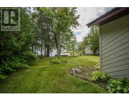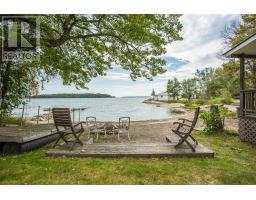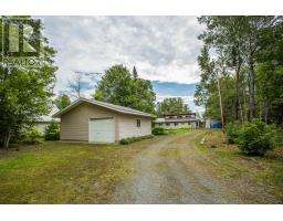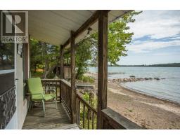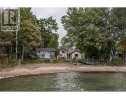 Charming waterfront home on Joe Dollar Bay in Bruce Mines, fully furnished and ready to go for seasonal use, nearly ready for year round enjoyment. This 2-bedroom gem features a loft overlooking the bay, perfect as a third bedroom. The primary bedroom boasts a sliding glass door to a small patio with a roll-out awning. Enjoy the great swimming beach with a wooden platform for lawn chairs and a large floating dock for summer fun. The home and outbuildings, including a cozy bunky by the water, a convenient storage building next to the house, and a spacious 2-car detached garage, all feature durable metal roofing. Note: the property requires a winterized lake intake water supply to be fully move-in ready. This idyllic retreat offers years of serene lakeside living. (id:47351)