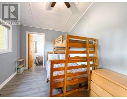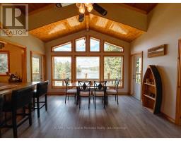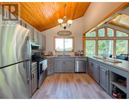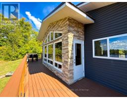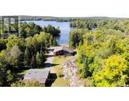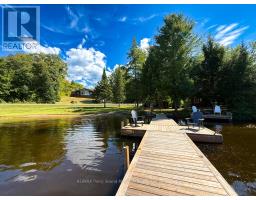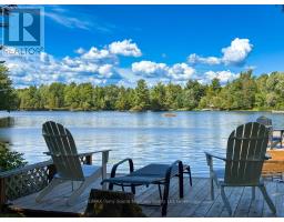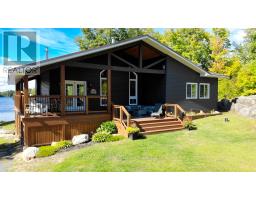 Turnkey Lake Manitouwabing Four-Season Bungalow. Discover this recently renovated bungalow situated on 1.1 acres with 238 feet of waterfront along a quiet bay on Lake Manitouwabing. Enjoy the beauty of nature right in your backyard or at the sandy beach, where the Canadian Shield has been thoughtfully incorporated into the landscaping and gardens. This spacious home offers three bedrooms plus a den and two 3-piece bathrooms. The open-concept great room/ dining room, and kitchen create a welcoming atmosphere, enhanced by beautiful views from the wraparound deck. Walkouts to both the front and back decks allow for easy indoor-outdoor living. The covered porch provides an ideal space for barbecuing or entertaining, even on rainy days. Inside, the house boasts vaulted ceilings, a galley kitchen with a breakfast bar, a wood-burning stove, and a forced-air propane furnace to keep you comfortable on cool or wintery nights. Outside, there is a large garage and workshop, as well as ample parking to accommodate family and guests. The sandy beach waterfront features a Bunkie for additional guest accommodation, a firepit, and storage space for recreational equipment. There is also a dock for boating and swimming. The quiet bay, located just off Burnett's Bay, connects to kilometers of water for boating, exploring, tubing, waterskiing, or fishing on this scenic finger lake. Take a short boat ride or drive to Tait's Landing Marina for family treats like ice cream. Golf enthusiasts can visit the Ridge of Manitou Golf Course during the spring, summer, and fall. In the winter, the area transforms into a playground for ATV riding, snowmobiling, ice fishing, snowshoeing, and cross-country skiing. The property is conveniently located just twenty minutes from the McKellar Market and Parry Sound, making shopping and amenities easily accessible. (id:47351)