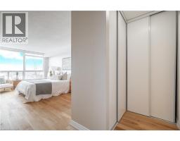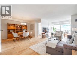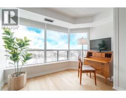 Welcome to effortless luxury living at the Grande Regency, where space, light, and location come together in this beautifully appointed 2-bedroom plus den, 2-bath condominium spanning 1,130 sq. ft. The interior features a smart, functional layout with generously sized principal rooms and oversized windows that fill the space with natural light. The expansive living and dining areas are ideal for entertaining or relaxing, while the large, bright eat-in kitchen is equipped with newer appliances, offering everyday comfort and functionality. The den is highlighted by large windows and an expansive view, making it an ideal home office or a peaceful retreat to sit back, unwind, and take in the scenery. Two spacious bedrooms provide comfort and privacy, with the primary suite offering a calm and inviting escape at the end of the day. In-suite laundry and one parking space complete the package. Living at the Grande Regency means enjoying an exceptional collection of amenities designed to enhance everyday living. Residents enjoy a heated outdoor pool, fitness centre, sauna, tennis, squash, and racquetball courts, rooftop lounge and terrace, party and game rooms, library, guest suites, 24-hour concierge and security, ample visitor parking—delivering true resort-style living year-round. This is an all-inclusive building, covering, heat, hydro, water, A/C, high-speed internet, cable, and building insurance. Perfectly positioned near the lakefront, Spencer Smith Park, and Burlington’s vibrant downtown core, this home offers exceptional walkability to shops, cafés, boutique stores, and top dining destinations. This is a rare opportunity to own a spacious, well-maintained condo in a premier community where convenience, comfort, and lifestyle come together at your doorstep. (id:47351)