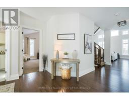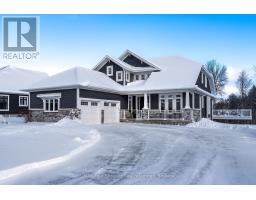Move in now and still enjoy the best of ski season in this stunning, custom-built home on one of the area's most coveted streets - just a 3-minute drive to Thornbury and moments from ski hills and Georgian Bay. Built by Reid's Homes in 2019, this 5-bedroom, 4-bathroom residence sits on an impressive 98 x 240 ft lot, offering privacy, space, and a true four-season lifestyle. The bright, thoughtfully designed main floor features 9' ceilings vaulted to over 20', oversized windows, and a striking custom stone fireplace with wood mantel. The chef's kitchen includes granite countertops, under-cabinet lighting, peninsula seating, and flows seamlessly into a separate formal dining room - ideal for entertaining. A main-floor primary suite offers a luxurious 5-piece ensuite, while a second bedroom doubles perfectly as a home office. Additional conveniences include a powder room and a spacious laundry/mudroom with direct access to the two-car garage. Upstairs, you'll find two generous bedrooms, a 4-piece bath, and an open loft living space overlooking the main level. The fully above-ground lower level is equally impressive, with a bright bedroom, ensuite, walkout access, and abundant natural light, enabling the property to ultimately offer almost 4000 sf of bright, above-ground living. Enjoy indoor and outdoor living with a full speaker system throughout the home, garage, and deck, plus a massive composite deck with glass railings, LED lighting, and outdoor speakers-perfect for summer evenings. With just one street between you and Georgian Bay and a backyard backing onto mature trees, this exceptional property delivers comfort, style, and location in equal measure. (id:47351)