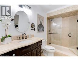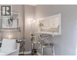 Incredible Location!! Updated Executive Townhome a short stroll from the Lake & Downtown Burlington. Welcome to the Charming Community of Maple Crossing, a private enclave of beautiful brick Townhomes surrounded by mature trees & plush gardens; only 2 blocks from the Lake! Uptown Loft Style 1+1 Bedroom, 2 Bath Townhome with backyard Terrace. Spacious Main Floor with wood plank vinyl flooring, well appointed eat-in Kitchen, Great Room w/ stunning Ledgestone Gas Fireplace Feature wall, Vaulted Ceilings & Triple Skylights. Upgraded Kitchen with white cabinetry, granite counters, custom back splash, Pantry, Breakfast Bar & window Dining Nook. Primary Bedroom spacious enough for a King bed, w/ vaulted ceilings, skylights, His & Hers Closets & Luxe 3pc Ensuite Bath with oversized Walk-In Glass Shower. Fully finished Basement offers and additional 400 sqft. of freshly updated Flex living space; new neutral paint with lush new wall to wall Berber carpet & an updated 3pc Bath with/ Luxurious clawfoot Soaking tub. Walk-out to a private fully fenced backyard Terrace for fabulous summer entertaining & BBQ's. Recently updated fencing & back Gate which opens onto well maintained green space. Two parking Spaces right outside your front door. Condo Corp. looks after Landscaping & Snow Removal in this quiet Townhome complex. Perfect for those who desire an easy lock & leave lifestyle. Walk to Burlington's Waterfront, unique Downtown Shops & Restaurants, Mapleview Mall, Theatre, Art Gallery, Jo Brant Hospital & More! Easy Transit, GO & Highway access. Low condo fee. Roof, Skylights & Fences have all been updated recently. Don't miss this one! Just move-in & start living a carefree Downtown lifestyle today! (id:47351)