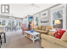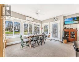 Welcome to 2 Chipmunk Lane in the Woodlands at East Lake Shores, a seasonal gated waterfront community (April-October) with resort-style amenities in Prince Edward County. Set on a generous 79' x 75' corner lot with no cottages directly behind and open space to one side, this fully furnished two-bedroom, two-bathroom bungalow stands out for its privacy, larger yard, and bright interior living space. The backyard and patio area provide room to relax, garden, or entertain, giving the property a more open feel than many in the community. A fully integrated sunroom surrounded by windows expands the interior living space and creates a bright dining area that also functions beautifully as a painting studio, enhancing the overall footprint and bringing natural light deep into the home. The open-concept living room connects to an efficient kitchen with neutral finishes, and two full bathrooms offer flexibility for owners and guests. A heat pump provides heating and cooling, while eavestroughs, a garden shed, and private two-car parking add practical value. Centrally located between the family pool and playground and the adult pool, gym, and lakeside patio, you're within easy walking distance of amenities while enjoying a quieter corner setting. East Lake Shores spans 80 acres with 1,500 feet of waterfront, a lakeside beach area with lounge chairs and swim dock, two heated pools, tennis, pickleball and basketball courts, fitness facilities, an off-leash dog park, and complimentary canoes, kayaks, and paddleboards. The lake is swimmable (water shoes recommended), and boat access is available via the public launch just down the road in Cherry Valley. Owners may participate in the on-site rental program, manage private rentals independently, or enjoy the cottage for personal use. Located 9 km from Sandbanks and minutes to Picton's wineries, shops, and restaurants, condo fees include water, sewer, TV/Internet, and grass cutting. (id:47351)
