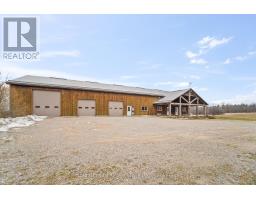 An Exceptional 42-Acre Estate w/ 2 Properties, Privacy & Unlimited Potential. A rare opportunity to own 42 breathtaking acres of rolling countryside, combining lifestyle, land, and income potential in one remarkable package. With expansive open space, multiple buildings, and commercial-grade infrastructure, this property is perfectly suited for those seeking freedom, flexibility, and long-term value. Anchoring the estate is a 6,000 sf multipurpose outbuilding equipped with 3-phase 600V500-amp electrical service, ideal for serious business, storage, or hobby use. The building includes three bay doors, office space, a 3-piece bath, and in-floor heating in the center bay and in-law suite. Above, a bright one-bedroom loft residence features an open-concept layout with a designer kitchen showcasing quartz counters, a large island, 36" Wolf gas range, Miele dishwasher, stainless fridge/freezer, and a sun-filled living area with a cozy gas fireplace. The bedroom offers wood ceilings, walk-in closet, laundry, and a spa-inspired bath. The 2200 sq ft bungalow offers four bedrooms and three bathrooms, ideal for family living. A spacious living room with a double-sided wood-burning fireplace flows into an eat-in kitchen with walk-out to a composite deck and above-ground pool. The grade-level walk-out basement is partially finished and includes a separate workshop or hobby room.The land is the standout feature, with approximately 30 workable acres surrounded by mature trees and open skies - perfect for farming, equestrian use, or future ventures. A new 125' deep well 2020 adds peace of mind.Ideal for investors, entrepreneurs, or creatives, the property supports numerous income-producing or lifestyle uses.Enjoy a 47' x 38' private gym, or transform the space into an indoor pickleball court, basketball court, yoga studio, art or pottery studio, or premium vehicle storage.A truly rare offering where acreage, infrastructure, and opportunity come together. (id:47351)