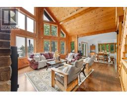 Tucked into a peaceful, tree-lined setting with stunning southern views over Lake of Bays, this charming 4-bedroom, 3-bath Viceroy-style home or cottage offers over 2,100 sq.ft. of thoughtfully updated living space. Inside, soaring ceilings and wall-to-wall windows invite the outdoors in, while a reimagined kitchen, warm wood accents, and a striking stone fireplace create a welcoming atmosphere year-round. The main level includes two comfortable bedrooms, a full bath, and a spacious laundry room, while the upper loft-style suite offers lake views, a walk-in closet, a private ensuite, and access to a brand new balcony deck the perfect spot for morning coffee. Downstairs, the walkout level features a granite-tiled rec room with a woodstove perfect for cozy evenings after a day on the trails around Lake of Bays or the lake. This home is as functional as it is beautiful, with a number of recent upgrades that add peace of mind: a new septic pump and line, a new well pump, air conditioning, and the finalized purchase of the Shore Road Allowance and survey. Outside, enjoy a brand-new crib dock and floating dock that enhance your private sand waterfront experience just across the cottage road. A rebuilt triple garage offers abundant space for vehicles, recreational gear, or a workshop setup. Whether you're searching for a weekend escape or a full-time lakeside lifestyle, this property is an opportunity on one of Muskoka's most desirable lakes. Book your private tour today and start your next chapter at the lake. (id:47351)