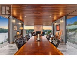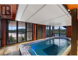 Exquisite waterfront home on Long Lake! Experience the ultimate in luxury and comfort in this architecturally stunning waterfront residence, set on expansive grounds with breathtaking lake views. This remarkable property boasts extensive water frontage, five spacious bedrooms, five and a half elegantly appointed bathrooms, and nearly 10,000 square feet of living space, featuring spa-like amenities, three inviting fireplaces, and a 4-storey Cambridge elevator. One of the home's most striking architectural highlights is the floor to ceiling windows, offering unparalleled views from every level. The gourmet kitchen is a true masterpiece, showcasing top-of-the-line appliances and a custom nautical island that is both functional and visually stunning. Ideal for entertaining, the home includes a sauna area, a workout room, an indoor pool, and a magnificent dining area, along with approximately 6,000 square feet of exterior balconies that provide sweeping views of the lake. This property offers a unique lifestyle opportunity, blending privacy, luxury, and the serene beauty of nature. Don’t miss your chance to own this extraordinary home! Don't delay, call today. (id:47351)