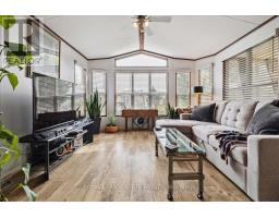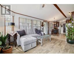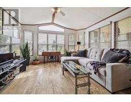 Welcome to 4449 Milburough Line #13 Spruce in beautiful rural Burlington! This charming and well-maintained 2-bedroom bungalow is located in a quiet, gated, year-round community surrounded by nature. Offering over 800 sq ft of comfortable living space, this modular home features an open-concept kitchen and living area, laminate flooring, and a bright, spacious 3-season sunroom with removable vinyl windows-perfect for relaxing. Recent updates include a newer roof, fresh paint throughout, updated steps, blinds, and a 2-car concrete driveway with walkway. Enjoy the peace and privacy of rural living with access to parks, golf courses, and trails, along with community amenities like an inground pool, recreation centre, and pavilion with organized activities. Ideal for downsizers, first-time buyers, or anyone seeking an affordable home in a serene setting. Land lease includes water, property taxes, and community maintenance. Flexible possession available. (id:47351)