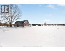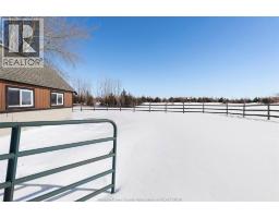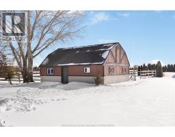 DIAMOND IN THE ROUGH! Ideally located on a picturesque 26-acre farm just 15 minutes from Windsor with easy access to Hwy 401. This solid brick ranch offers an attached 3-car garage, 3+1 bedrooms, and 2.5 bathrooms, including a primary bedroom with a 2-piece ensuite. Functional layout features an eat-in kitchen and main-floor family room with gas fireplace. The full basement includes a grade-level entrance and second kitchen, is waterproofed (2020), and is ready for finishing—ideal for extended family or added living space. Roof replaced in 2018. Outdoors, the property boasts approximately 18 acres of tiled farmland (Brookston clay soil), a barn (24’ x 30’) with two horse stalls, fenced riding paddock, and an impressive pond approx. 1.29 acres. A perfect setting for year-round outdoor enjoyment. Home requires some TLC; seller makes no representations or warranties. An outstanding opportunity for horse enthusiasts and hobby farmers to create their dream rural retreat. (id:47351)