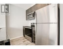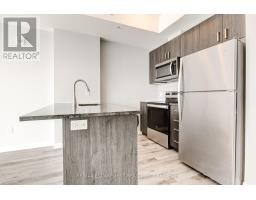 On the edge of downtown Kitchener, this north-facing 1 bedroom condo at 108 Garment Street offers downtown living in a bright and modern unit with unobstructed views. Completed in 2022, the unit features a functional layout anchored by a sleek kitchen with stainless steel appliances, a double sink, dishwasher, and generous counter space. An peninsula comfortably seats three, ideal for casual dining or entertaining.The open living area flows to a private north-facing balcony with open views toward Uptown Waterloo and beautiful sunset light. A dedicated den provides valuable flexibility-perfect for a home office or organized storage. The bedroom is comfortably sized with a walk-in closet and floor to ceiling windows overlooking the private balcony and views, complemented by a bathroom with a tub/shower and the convenience of in-suite laundry. One underground parking space and a storage locker are included. Residents enjoy use of a fitness room, yoga studio room, party room, and a large outdoor terrace with pool, basketball court, BBQs, and seating, along with convenient public visitor parking next door. With LRT, bus routes, dining, shops, and the tech district at your doorstep, this unit offers an easy, low-maintenance home and lifestyle in a central, connected location. (id:47351)