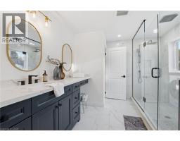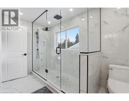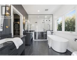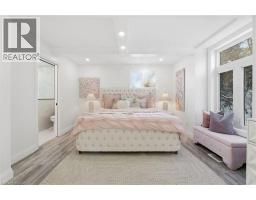 This stunning two-storey home is the definition of modern luxury. Extensively renovated over the past four years, it sits on a rare half-acre lot, offering a peaceful, country-like feel right in the heart of Burlington. Inside, you’ll find 4 bedrooms, 3.5 bathrooms, with 4,323 sq. ft. of living space. Engineered hardwood throughout, solid panel interior doors, pot lighting, and premium finishes in every room. Oversized windows and thoughtful design allow natural light to flood the home throughout the day. A spacious formal dining room sits just off the chef’s kitchen, which showcases high-end Thermador appliances, Venetian porcelain countertops on island, backsplash, and custom range hood. A completely hidden butler’s area includes a second oven, build-in microwave, additional sink, and a walk-in pantry, perfect for seamless entertaining. Custom sliding doors off the living room open to a large deck and a beautifully private, fully fenced-in backyard, ideal for hosting or future pool plans. The main floor also offers a dedicated office, perfect for working from home. A separate hallway off the living room leads to two additional bedrooms that share a spacious Jack & Jill bathroom. Upstairs, the private primary wing includes a large bedroom, spa-inspired ensuite with heated floors, a walk-in closet with washer and dryer, and a private balcony with city views overlooking the backyard. All full bathrooms feature heated floors. A self-contained in-law suite offers its own entrance, full kitchen, living room with coffered ceilings, large bedroom with ensuite, in-suite laundry, and a private deck, ideal for multigenerational living or guests. The finished basement adds flexible space for a playroom, gym, media lounge, or sauna. An attached 1-car garage with inside entry completes this exceptional home. Luxury, space, and sophistication, this home truly has it all. (id:47351)