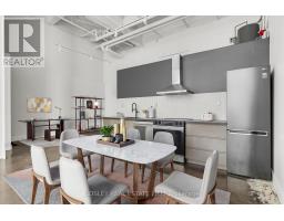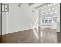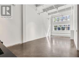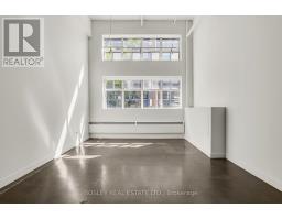 A true hard loft in the heart of Leslieville. With 17'7" ceilings and dramatic steel column detailing, this is industrial authenticity at its best. Recently painted and renovated, the space now includes a massive storage closet with integrated laundry, and a sleek new kitchen peninsula that adds both style and function. Together with a luxurious full washroom featuring a massive walk-in glass enclosed shower. Enormous factory-style windows flood the space with natural light, and sealed, raw concrete floors reflect it back with just the right edge. Almost 1,000sf of open-concept layout offers flexible living and working potential. Living large with no pesky partition walls. You're the star and this is your Chelsea Gallery movie set. Action! Add to that direct main-level and semi-private access ideal for creatives, small business owners, or anyone who values the ability to come and go with ease. Air conditioning keeps things cool, and the pet-friendly building means no one gets left behind. Just steps to Queen East, with its wealth of cafes, restaurants, bars, transit and shops, and mere moments to the DVP. This is urban loft living, with all the grit and all the polish you've been looking for. (id:47351)