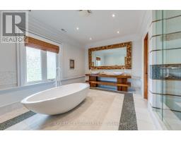 Welcome to 132 Crestwood Road, a distinguished custom-built luxury residence in the heart of Thornhill, offering over 8,000 sqft. of impeccably finished living space. This stately home makes an immediate impression with its cobblestone circular driveway, wrought-iron fencing, and oversized 3-car garage. A dramatic skylit staircase sets the tone for the thoughtfully designed interior, where elegant 10-ft ceilings grace the main level, complemented by formal living and dining areas, a private study, and a chefs kitchen by Leicht featuring rare Italian marble countertops, heated floors, Miele built-in appliances, and motorized lift-up cabinetry with custom lighting. The upper level boasts 9-ft ceilings and five generously sized bedrooms, each with vaulted ceilings, private ensuite baths, dimmable LED lighting, and custom built-in closets. The luxurious primary suite offers a walk-in dressing room, a cozy library/yoga nook, and a spa-inspired 6-piece ensuite with heated floors and a steam shower. The finished basement evokes a serene Scandinavian spa with a cedar-lined sauna, a spacious entertainment area, and room for a home gym or media lounge. Outdoor living is equally refined, with a granite patio, custom stone shed, and landscaped gardens ideal for relaxation and entertaining. Additional highlights include dual furnaces and A/C units, central vacuum, and designer lighting throughout. Ideally situated near Yorkhill Elementary, Woodland Public (French Immersion), Thornhill and Vaughan Secondary Schools, as well as St. Anthony and St. Elizabeth Catholic schools, and just a short walk to TTC/YRT transit, Galleria Supermarket, and Steeles Avenue shops. This home offers a rare blend of luxury, practicality, and premier location in one of Vaughan's most coveted neighbourhoods, Welcome Home! (id:47351)