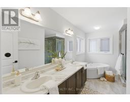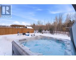 This stunning 4 bedroom "Macdonald" model by Graycraft Homes, developer of the prestigious Upper Courtice Trails, is under 5 years old, set on a premium lot backing onto conservation lands, offering privacy, tranquility & an elevated living experience. Thoughtfully designed with refined finishes & architectural presence, this home blends timeless elegance with modern luxury. The heart of the home is a show-stopping custom kitchen, beautifully appointed with stunning quartz countertops, an expansive centre island with breakfast bar seating, and a striking designer backsplash. A full suite of GE Caf appliances elevates both form and function, including an induction cooktop, custom statement range hood, double beverage drawers, a curated coffee bar and pantry space. A true entertainer's kitchen designed for both everyday living and special occasions. A walk-out to the yard seamlessly connects indoor and outdoor living, all while overlooking serene conservation views, enjoying the patio, gardens and hot tub. The living room exudes warmth & sophistication, featuring a coffered waffle ceiling & a gas fireplace that anchors the space with understated luxury. A formal dining room offers elegant entertaining options, while the sunken foyer and interior garage access to a mostly insulated garage. The primary suite is a private retreat, with 2 walk-in closets, and a spa-inspired 5-piece ensuite showcasing a corner soaker tub, glass-enclosed frameless shower and double-sink vanity. Three additional well-proportioned bedrooms, each with built-in closets, provide flexibility for family, guests, or home office use. The level is completed by with second-floor laundry, reinforcing the thoughtful design throughout. The lower level currently used as family space with a large rec room, featuring large egress windows that flood the space with natural light and a rough-in for a bathroom. Extras; gas line to BBQ/split double tap. (id:47351)
