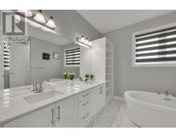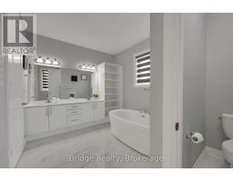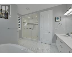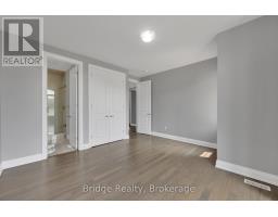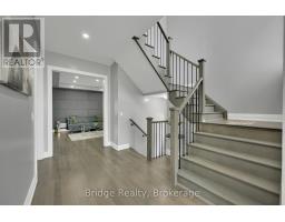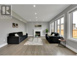 Stunning and meticulously upgraded 3-year-old detached home nestled in one of Woodstock's most desirable neighborhoods. Boasting over 3,200 sq. ft. of sophisticated living space, this residence features 4+1 bedrooms, 6 luxurious bathrooms, and a spacious media room, ideally positioned on a tranquil street facing a future park, rainwater pond, and conservation lands. Exquisite finishes throughout include engineered hardwood flooring, gleaming quartz countertops, soaring 9-ft smooth ceilings, 8 feet doors elegant pot lights, custom wall moldings, large upgraded tiles, freshly painted, and a grand oak staircase with stylish metal pickets. The main floor welcomes you with a bright foyer, powder room, formal living and dining areas, a cozy family room with fireplace, and a modern chefs kitchen adorned with quartz tops plus a rare main floor bedroom with a private 3-piece ensuite, ideal for guests or elderly family members. The upper level showcases a spacious media room (easily convertible into a 6th bedroom), convenient laundry, and four generously sized bedrooms each with its own luxurious ensuite bath. A separate private entrance to the basement offers exceptional potential for a future in-law suite or income-generating rental unit. Ideally located within walking distance to Gurdwara Sahib, school(Being built), and vibrant plazas, and just minutes from pittock park Conservation Area, beach, and scenic trails. With close proximity to major amenities like the Toyota Plant, Walmart, hospital, and seamless access to Hwy 401, this home offers the perfect blend of luxury, comfort, and convenience. (id:47351)