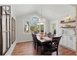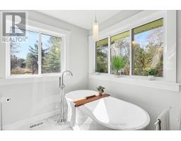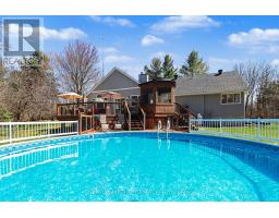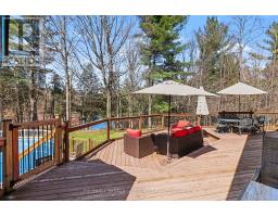 Discover the sought-after community of Elmsley Acres - one of the most desirable rural subdivisions in the Perth area - where this stunning 5-bedroom, 4-bathroom bungalow offers the perfect blend of privacy and convenience just 4.3 kms from town. Set on a picturesque 3+ acres at the end of a cul-de-sac, surrounded by mature trees and backing onto Jebbs Creek, this home is perfect for the nature lover who enjoys exploring by kayak or canoe. From the moment you open the front door, the gorgeous open-concept kitchen with quartz counters, island, & custom cabinetry, open to both the dining room and living room with stone surround gas fireplace, will inspire you. A view from every window brings the beauty of nature indoors filling the space with natural light from the bonus sun room that would make a great play room or home office, to the spacious primary bedroom with patio doors opening onto the back deck, and boasting an incredible custom walk-in closet that opens onto a beautiful spa like 5-piece ensuite with quartz double vanity, soaker tub, and glass & tile shower. The wonderful layout also features a spacious loft bedroom with its own 4-piece bathroom - ideal for guests, teens or a home studio. Well thought out, the main floor also includes a fantastic laundry/coat room, and an expansive finished basement complete with bedroom, bathroom, spacious family room with cozy wood stove, wet bar, workshop, exercise room with convenient walk-up outdoor access, cold room, and storage room. Last but not least is the on-ground heated pool overlooking the beautiful yard and creek behind. Truly an exceptional home in an exceptional location. Book your private showing today. (id:47351)