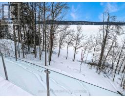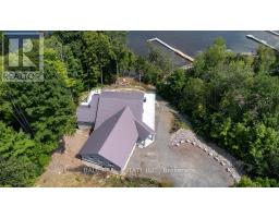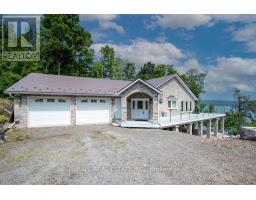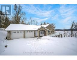 Welcome to 13540 Highway 35 in Minden, an exceptional newly built waterfront home set on 0.63 of an acre with coveted east exposure, offering breathtaking views of Mountain Lake-perfect for boating and waterfront enjoyment on a two-lake chain. This impressive custom-built 4-bedroom, 2-bath home offers over 3,000 sq. ft. of beautifully finished living space, perfectly designed for year-round enjoyment. Step inside to a bright, open-concept main floor featuring a stunning kitchen with granite countertops, custom cabinetry, and a large breakfast bar-perfect for entertaining. Dining area with floor to ceiling cabinets for extra storage. The spacious living room, complete with a fireplace, walks out to a spectacular lake-facing wraparound composite deck with sleek glass railings and in-deck lighting, offering breathtaking panoramic views and unforgettable sunrises. A spacious primary suite and second bedroom also feature walkouts to the deck, creating seamless indoor-outdoor living. Large 4pc bathroom with soaker tub, main floor laundry and entry to the oversized double car garage. The fully finished lower level offers incredible additional living space with a cozy, efficient wood-burning fireplace, two generous bedrooms, 5pc bathroom and multiple walkouts to a beautifully designed interlock patio. The meticulously landscaped, tiered lot showcases gabion stone walls, perennial gardens, walkways, a firepit area, and excellent shoreline access for enjoying the lake. Additional features include durable stone exterior, metal tile roof, in-floor heating throughout, a high-efficiency forced air furnace and central air conditioning. An oversized double-car garage with ample storage and private basement access adds to the home's functionality. Conveniently located just minutes from Minden, you'll enjoy easy access to dining, shopping, groceries, medical services, and more. A rare opportunity to own a stunning waterfront property where lasting family memories are made. (id:47351)