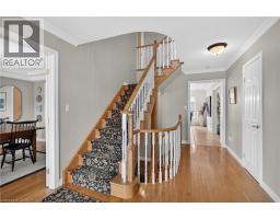 Tucked away on a quiet street in one of South Waterdown’s most desirable neighbourhoods, this spacious home sits on a pie-shaped lot backing onto a forest and the Bruce Trail; offering the kind of space, privacy, and setting that families are always searching for. The main floor features generous living spaces filled with natural light from large windows overlooking the private backyard. Crown moulding throughout adds a finishing touch. At the heart of the home, the kitchen offers a large island, abundant cabinetry, a walk-in pantry, along with a convenient butler’s pantry connecting the kitchen to the dining room which is perfectly designed for effortless hosting and everyday living. A sunken family room adds warmth and character, while a dedicated main floor office and main floor laundry provide the practical spaces today’s households want and need. Upstairs, the primary suite features a four-piece ensuite, a walk-in closet, and additional closet space. Three additional bedrooms provide plenty of room for growing families, complemented by a spacious main bathroom designed to easily accommodate busy mornings.The finished lower level adds even more living space with a large recreation room, a charming playroom, an additional bedroom, and a four-piece bathroom, making this space ideal for guests, teens, or extended family. Large above-grade windows fill the space with natural light, creating a bright and welcoming lower level, while the walkout provides direct access to the backyard. Outdoors, the private lot is truly spectacular, offering a peaceful setting surrounded by mature trees. Also featuring a rarely offered workshop with garage-door access provides incredible flexibility for hobbyists, storage, or creative projects. Complete with a charming front porch and a double garage with loft-style storage, this is a home defined by generous space, thoughtful design, and a truly special setting in South Waterdown offering the ultimate in privacy and tranquility. (id:47351)