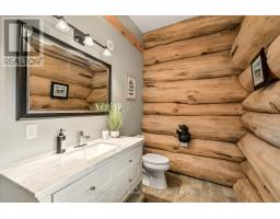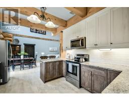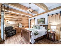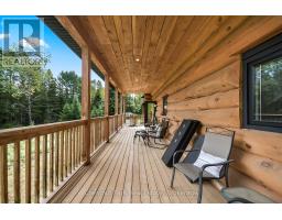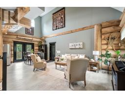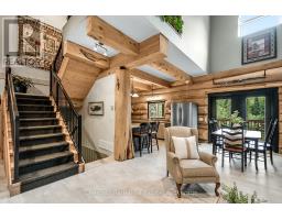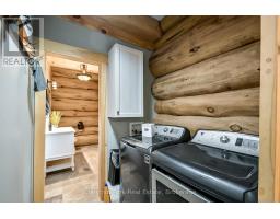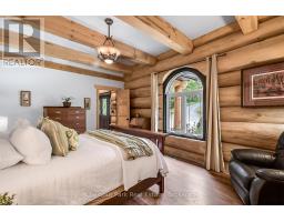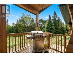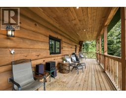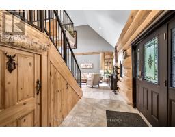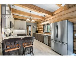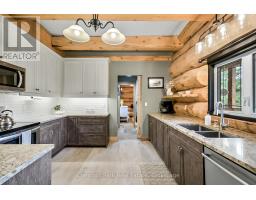 Tucked away on a 2.5 acre escape, this custom-built Scandinavian hand scribe log home welcomes you with its soul-soothing blend of rustic elegance and modern comfort. Despite its incredible privacy, this home is in the vibrant community of Huntsville, Muskoka, surrounded by natural beauty, this one-of-a-kind retreat offers a life where every day feels like a getaway. Masterfully crafted by Little Log Homes in 2020 for the current owner, this remarkable property showcases massive hand-hewn logs, soaring ceilings, and an impressive log entry covered porch that immediately sets the tone for the craftsmanship within. Huntsville is the largest community in Muskoka offering charming shops, restaurants, golf courses, live theatre & access to Arrowhead Park. Only 5 years old & meticulously maintained, this home is a rare opportunity to own a truly one-of-a-kind log home retreat. 1 minute to the Big East River, for casting a fishing line, or enjoying a peaceful paddle, and just minutes for a stroll alongside the Big East River to the historic Dyer Memorial. This property invites a slower pace and a deeper connection to nature. A truly unique home that blends character, comfort & the spirit of the outdoors. Bungaloft floor plan with over 1800 sqft of living space on the main level second level. Main floor primary bedroom with 5pc ensuite bath & walk-in closet with 2 guest rooms, office & 3pc bath on second level. 2 pc powder room & laundry on mail level with There are many extra features to this home to name a few; quartz counter tops, hot water on demand, central vac, central air, oversized detached garage with extra high garage door, Generlink generator system to run entire home, 10' main floor ceilings, 9' second level ceilings, ICF foundation, 46' back covered decking overlooking natural treed surroundings. Full walk-out basement with additional living space (663.50 sqft approx) offering in-law suite capability with kitchenette, 3 pc bath with large family room. (id:47351)