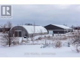 Step inside this meticulously crafted home on 150 acres, centrally located between Meaford, Grey Highlands, and the Blue Mountains. The interior blends rich textures and thoughtful design, preserving history with custom wood features made from the original farmhouse. A brick-backed fireplace with a classic black wood stove anchors the spacious great room, while the chef's kitchen features bold red cabinetry, a bright blue island, open shelving, a farmhouse sink, and a high-performance professional-style electric range with smooth cooktop, multiple burners, and double ovens. Heated polished concrete floors flow through the living, kitchen, dining, and four-season sunroom, which opens to a private deck perfect for outdoor dining. The primary bedroom is a private retreat with double walk-in closets, access to the covered balcony, and a walk-through to an extra-large office and family room with a second balcony. Three additional bedrooms and one and a half baths provide space for family and guests. An oversized mud/laundry room with built-in storage, large tile shower, and direct access to the two-car garage. Outside, the home blends historic character with modern style, featuring weathered wood siding on the original home paired with a clean-lined contemporary addition. The land includes two large hardwood stands, about 100 acres of open land-much in hay and suitable for cash cropping-with the balance in pasture, naturally drained soil, and excellent fencing on the front 50 acres. The Rocklyn creek adds more beauty in all seasons as it meanders through the property .A fully insulated, in-floor heated 32x64 shop with 10 kW solar, a 42x92 Coverall barn (2014) with heated tack and feed room, ten 12x12 stalls, oversized aisles, and ample storage, plus a 5-year-old 74x144 riding arena, make this property ideal for agricultural or equestrian pursuits. (id:47351)