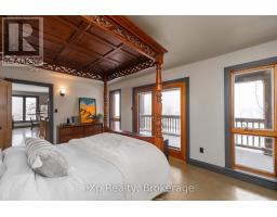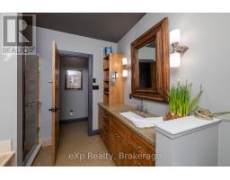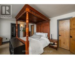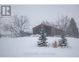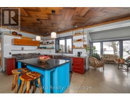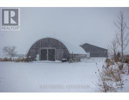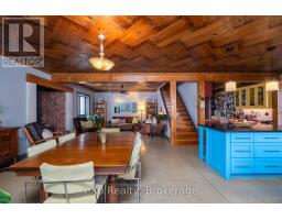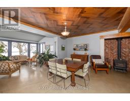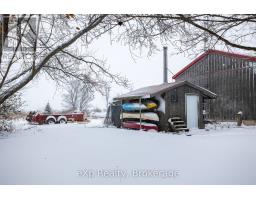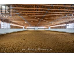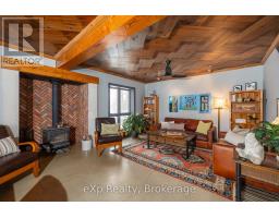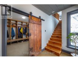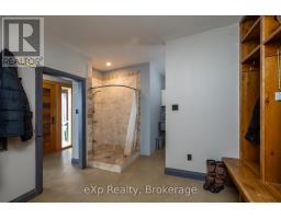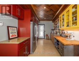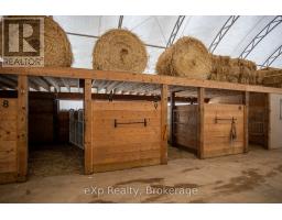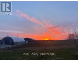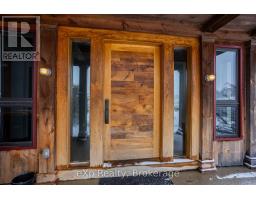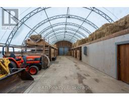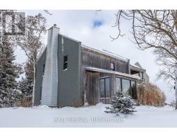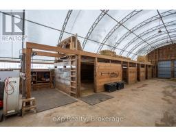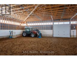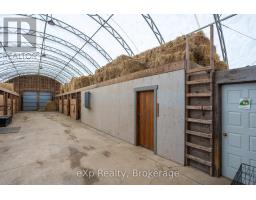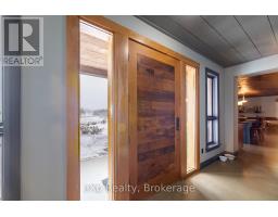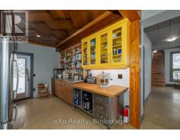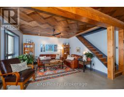 Step inside this meticulously crafted home on 150 acres, centrally located between Meaford, GreyHighlands, and The Blue Mountains. The interior blends rich textures and thoughtful design, preserving history with custom wood features made from the original farmhouse. A brick-backed fireplace with a classic black wood stove anchors the spacious great room, while the chef's kitchen features bold red cabinetry, a bright blue island, open shelving, a farmhouse sink, and a high-performance professional-style electric range with smooth cooktop, multiple burners, and double ovens. Heated polished concrete floors flow through the living, kitchen, dining, and four-season sunroom, which opens to a private deck perfect for outdoor dining. The primary bedroom is a private retreat with double walk-in closets, access to the covered balcony, and a walk-through to an extra-large office and family room with a second balcony. Three additional bedrooms and one and a half baths provide space for family and guests. An oversized mud/laundry room with built-in storage, large tile shower, and direct access to the two-car garage. Outside, the home blends historic character with modern style, featuring weathered wood siding on the original home paired with a clean-lined contemporary addition. The land includes two large hardwood stands, about 100 acres of open lan, much in hay and suitable for cash cropping, with the balance in pasture, naturally drained soil, and excellent fencing on the front 50 acres. The Rocklyn creek adds more beauty in all seasons as it meanders through the property. A fully insulated, in-floor heated 32x64 shop with 10 kW solar, a 42x92 Coverall barn (2014) with heated tack and feed room, ten 12x12 stalls, oversized aisles, and ample storage, plus a 4-year-old 74x144 riding arena, make this property ideal for agricultural or equestrian pursuits. (id:47351)