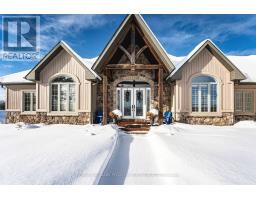 INDULGE IN LUXURY ON 2.1 ACRES WITH BREATHTAKING VIEWS, SHARED OWNERSHIP OF AN ADDITIONAL 32 ACRES, & A MAN-MADE LAKE!! Enter a realm of unrivalled elegance and awe-inspiring beauty! This jaw-dropping executive bungalow, set on 2.1 private acres, offers an extraordinary lifestyle with shared ownership of a human-made lake and 32 surrounding acres. The lake is perfect for swimming, stand-up paddleboarding, kayaking, winter hockey, or skating while stocked with smallmouth bass. Just moments from Simcoe County Forest trails, snowmobile trails, skiing, and outdoor adventures are at your doorstep. The curb appeal is simply unmatched, from the striking stone and board-and-batten exterior to the lofty peaked rooflines. Inside, nearly 4,600 finished square feet of open-concept living space showcases expansive lake views through large windows, highlighted by exquisite Brazilian cherry flooring and elegant tray ceilings with pot lights. The heart of this home is the high-end chef's kitchen, with granite countertops, top-tier appliances, an abundance of cabinetry, and a large island with seating. The spacious primary bedroom features a private deck, a walk-in closet, and a luxurious 5-piece ensuite. The custom, one-of-a-kind wrought-iron staircase gracefully leads to the walkout basement, where you'll find radiant heated floors, a spacious rec room with a bar area, three bedrooms, an indoor spa/hot tub room, and a full bathroom. Step into the 3-season Muskoka room for the ultimate in relaxation and entertaining. A triple car insulated and heated garage with high ceilings, a circular driveway with ample parking, and significant updates like newer shingles, A/C, and a boiler hot water tank for radiant heat make this a truly exceptional property. Live the life you've always dreamed of in a home that has it all! (id:47351)