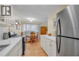 An unbeatable location for this updated, bright and spacious, 1 bedroom corner unit at Lakeside Heights in downtown Burlington, directly across from Spencer Smith Park, literally steps to the lake, trails, and hospital, only a minute to the QEW, 403 and 407, and surrounded by just about every other amenity. Lakeside Heights is the premier co-op building in Burlington. This unit features 780sqft, an updated kitchen with quartz countertops, brand-new stainless steel fridge, stove, and range hood, backsplash, new sink and faucet, quality cabinetry with soft-close drawers, and a pantry, a dining area off of the kitchen with large window, a large living room with lots of windows, a spacious primary bedroom with 2 closets, an updated 4- piece bathroom with new vanity, porcelain countertop, faucet, showerhead, toilet, vinyl floors, and reglazed tub and wall tile, quality hardwood floors throughout, updated light fixtures, lots of closet/storage space, and freshly painted throughout. This unit is in a great location in the building, just a few steps to the laundry, the storage locker, the parking lot, and the secluded large and private back deck. The building has a great community feel, is very quiet, extremely well maintained, has a great condo committee, and a healthy reserve fund. The building also has an elevator, onsite laundry facility, and ample visitor parking. The monthly fee includes PROPERTY TAX, heat, water, cable, internet, storage locker, and exclusive parking space. Adults only. No rentals/leasing. No pets other than service animals. This unit shows pride of ownership, has many beautiful and very recent updates, and is move-in ready! Don’t wait and miss this one! Welcome Home! (id:47351)