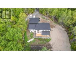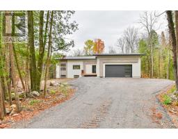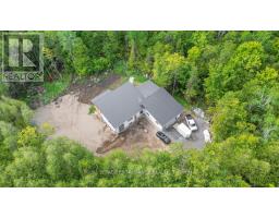 Welcome to this bright and contemporary bungalow, perfectly set on a stunning wooded 1.93 acre lot in one of the areas most sought-after neighborhood's. This brand-new build combines modern design with high-quality finishes and the peaceful charm of a private, treed setting. The home features an open-concept floor plan with soaring vaulted ceilings and beautiful hardwood flooring throughout the main level. Large windows fill the space with natural light, while the spacious living and dining areas flow seamlessly to the kitchen and out to the large covered rear deck ideal for relaxing and entertaining while surrounded by nature. Offering 2 bedrooms and 2 bathrooms (there is also a 3rd bath plumbed in the basement), including a luxurious ensuite, this home is thoughtfully designed for comfort and style. The full walkout basement provides excellent potential for additional living space, hobbies, or storage. An attached two-car garage, high-efficiency furnace, and central air conditioning ensure convenience and efficiency year-round. A rare opportunity to enjoy contemporary living in a private, wooded setting this home is nearing completion and has a full Tarion Warranty. This Modern Country Hideaway is waiting for you! (id:47351)