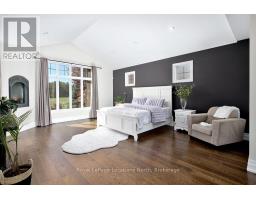 Discover over 5,300 square feet of beautifully appointed living space in this exceptional 5 bedroom, 4 bathroom home located in the prestigious Lora Bay community, just minutes from downtown Thornbury.The open-concept main floor welcomes you with soaring ceilings in the great room, highlighted by a striking floor-to-ceiling stone wood-burning fireplace that creates a warm and inviting focal point. The chef's kitchen offers granite countertops, high-end built-in appliances, a generous island with bar seating, and plenty of space for gathering with family and friends. The spacious primary suite features a gas fireplace, luxurious 5pc ensuite bathroom, and walk-in closet, providing a private and serene retreat. Also on the main level are a dedicated office/den, a convenient laundry room with pantry, and access to the attached two-car garage.Upstairs, a versatile loft area overlooks the main living space and leads to 2 guest beds and a 5pc bath. The finished lower level is perfect for entertaining, complete with a large rec room featuring a bar and projector, pool table, flex room, 2 additional beds, wine cellar and a 3pc bath.Outside, the private backyard offers a tranquil escape surrounded by mature trees, beautiful landscaping, and a new privacy fence-ideal for hosting gatherings after a day of golf or skiing.Recent updates include a new fibreglass front door and custom sliding patio doors (2025), new carpet in the den (2025), new roof (2024), a fitness room and recreation room bar addition (2024), a wine cellar (2021), and high-efficiency furnace and air conditioning (2020). Extensive landscaping enhancements complete this impressive property.Enjoy access to an award-winning golf course, clubhouse restaurant, members-only lodge, fitness centre, and two private beaches. With private ski and golf clubs nearby, this home perfectly blends luxury, comfort, and community in one of South Georgian Bay's most desirable settings. (id:47351)