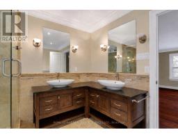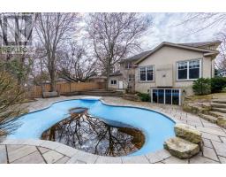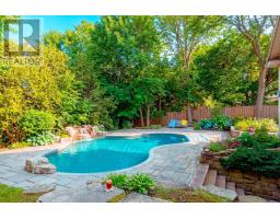 Welcome to this exceptional upscale residence set on a sprawling 75 x 150 ft lot in prestigious Coronation Park. A 10-minute walk to Coronation Park on Lake Ontario and minutes to Bronte Harbour and Village, Oakville Harbour and downtown Oakville, for upscale shopping and restaurants. A 5-minute drive to the QEW and Bronte GO Station for commuters. Showcasing outstanding curb appeal with a stucco and stone façade, deluxe mouldings, professional landscaping, a stone walkway, covered flagstone porch and an extra-long driveway to a triple (tandem) garage, the home transitions seamlessly to a private backyard oasis-an entertainer's dream with upgraded stone patios, a custom saltwater pool with armour stone waterfall, lush gardens, multiple seating areas and ultimate privacy with mature trees. Offering 4 spacious bedrooms, 3.5 bathrooms and a professionally finished walk-up basement, the interior exudes refined craftsmanship with exotic hardwood floors, smooth ceilings, rounded drywall corners, crown mouldings, custom cabinetry, an impressive floating staircase, and abundant natural light. Highlights include a grand dining room, a dramatic family room with a cathedral ceiling, a gas fireplace and walkout, a private office, and a chef's kitchen with custom cabinetry, granite counters, an oversized island and premium Viking appliances. Upstairs features four generous bedrooms and two lavish bathrooms, including the primary retreat with a spa-inspired ensuite offering a jetted tub and a glass shower. The walk-up basement impresses with a large recreation room, a games room with a fireplace, a media lounge, and a 3-piece bath-perfect for family living and entertaining. (id:47351)