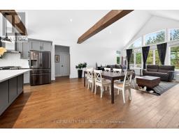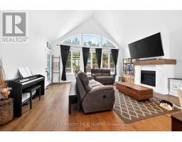 Set on just over an acre in the quiet community of Lafontaine, this exceptional home offers privacy, natural surroundings, and a level of craftsmanship that's evident throughout. The gently sloping lot extends into your own apple orchard with no neighbours behind, offering a great balance of space and functionality for outdoor enjoyment and activities. Inside, the main living area features hardwood flooring, cathedral ceilings with exposed beams, and large front and rear windows that fill the space with natural light. The stunning chef-inspired kitchen is thoughtfully designed for both everyday living and entertaining, featuring quartz countertops, a standalone island, and seamless flow into the dining and living area complete with a cozy gas fireplace. The primary suite includes a walkout to the back deck, a walk-through closet, and a finished four-piece ensuite. With three bedrooms and two full bathrooms, the layout works perfectly for anyone seeking quality main floor living. The fully finished lower level offers additional flexibility and space with radiant in-floor heat, a large open area for recreation, fitness, or work, plus two additional bedrooms-perfect for extended family or guests. A separate heated garage and workshop adds valuable versatility, complete with its own radiant in-floor heat and a convenient two-piece washroom-ideal for hobbyists, contractors, or anyone needing a dedicated workspace. Located just minutes from Lafontaine Beach Park, you'll enjoy easy access to one of the area's best sandy shorelines for swimming, kayaking, and sunset walks, while everyday amenities and dining are just a short drive to Midland and Penetanguishene. Don't let this amazing opportunity pass you by! (id:47351)